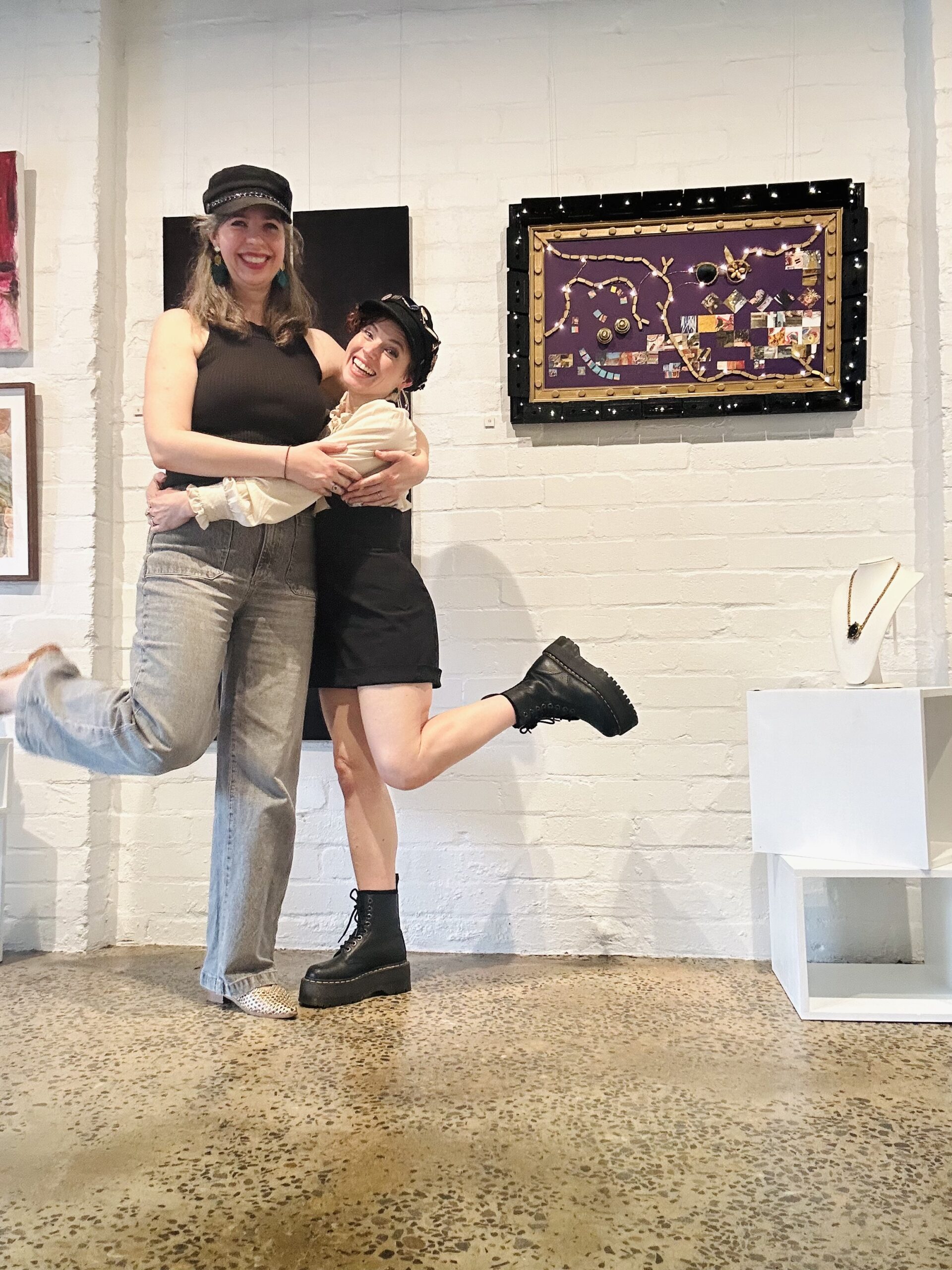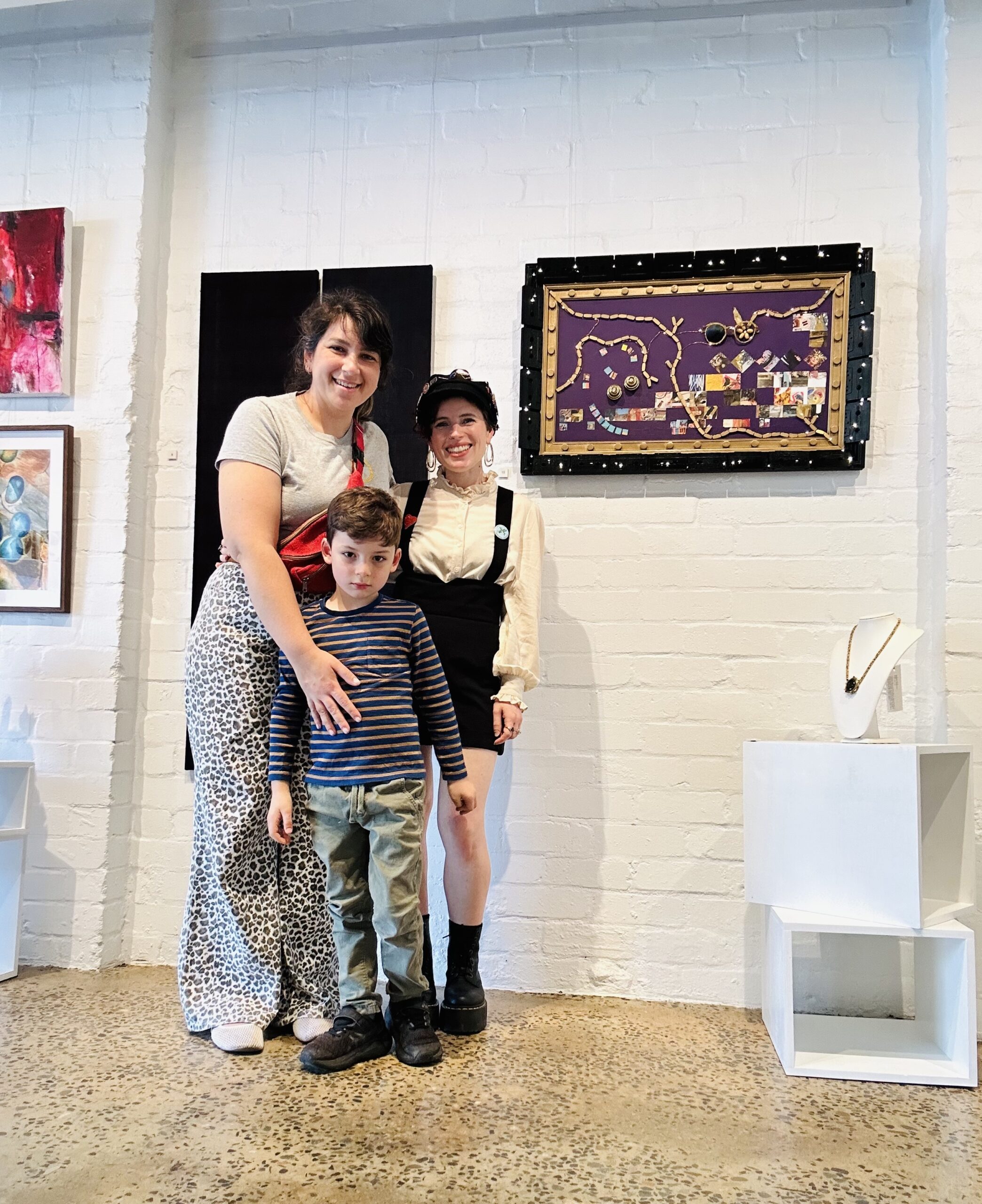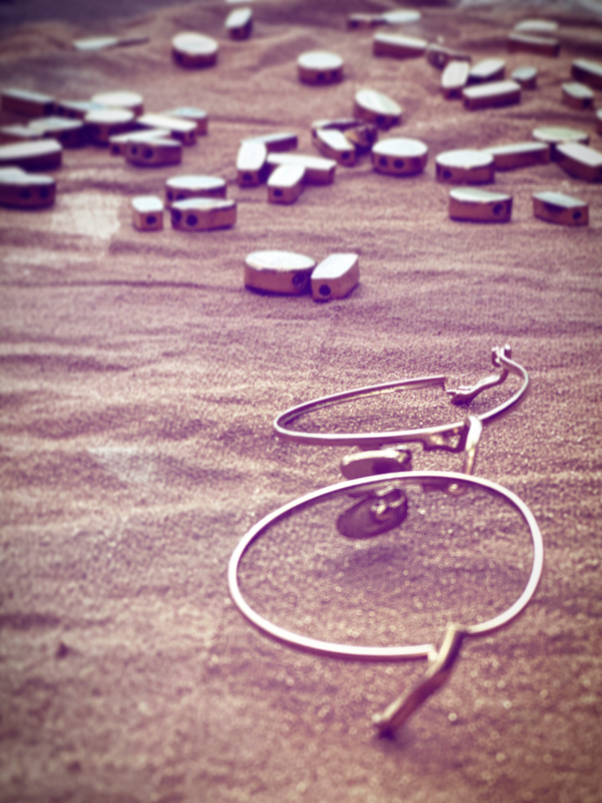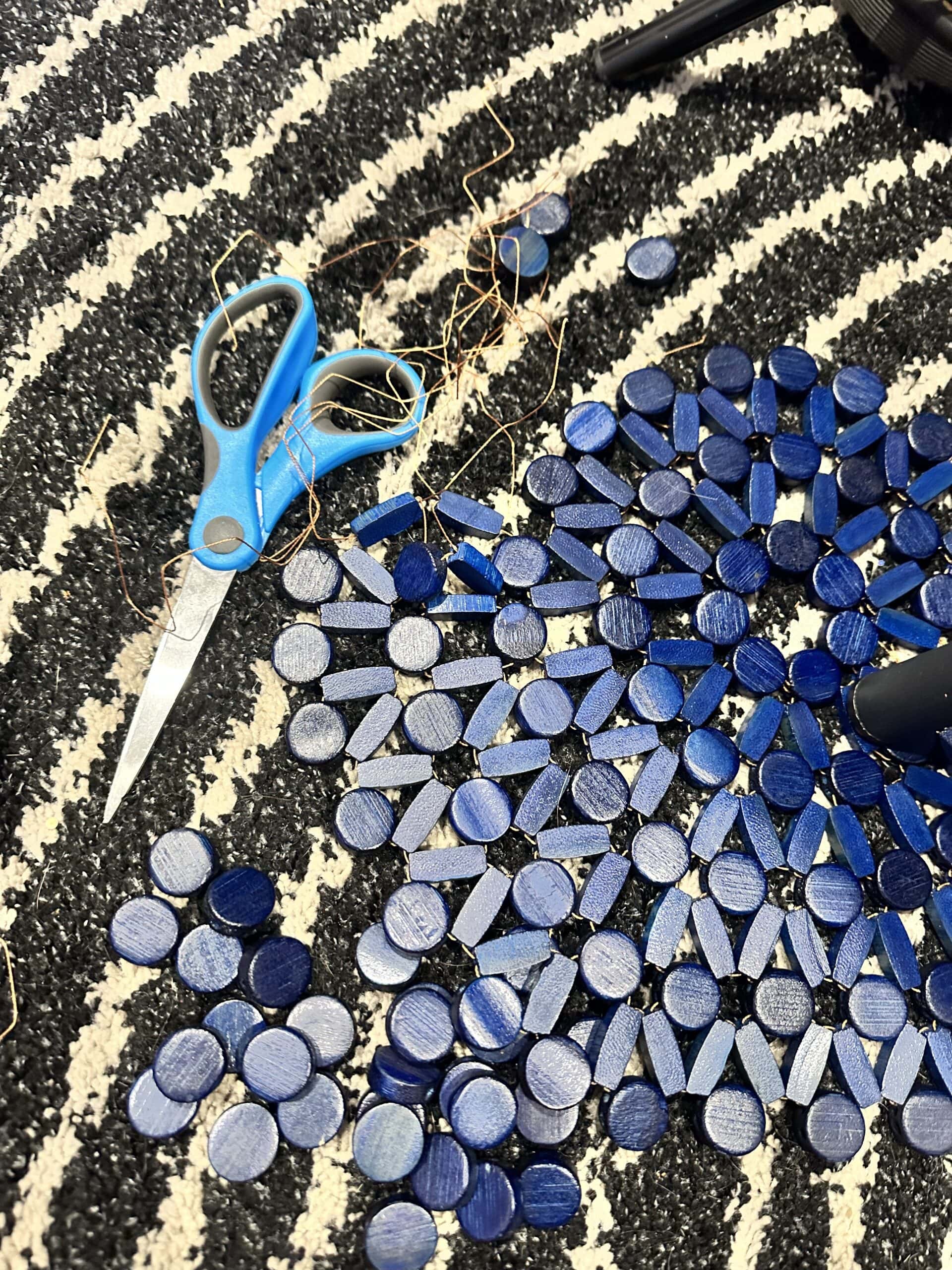 Recycled frame, scrap plywood, recycled beaded placement, recycled bed nobs, recycled cassette tapes, acrylic paint, glitter, wire led lights, collage – basically anything thats been sitting in my studio for years waiting patiently to be made into art.