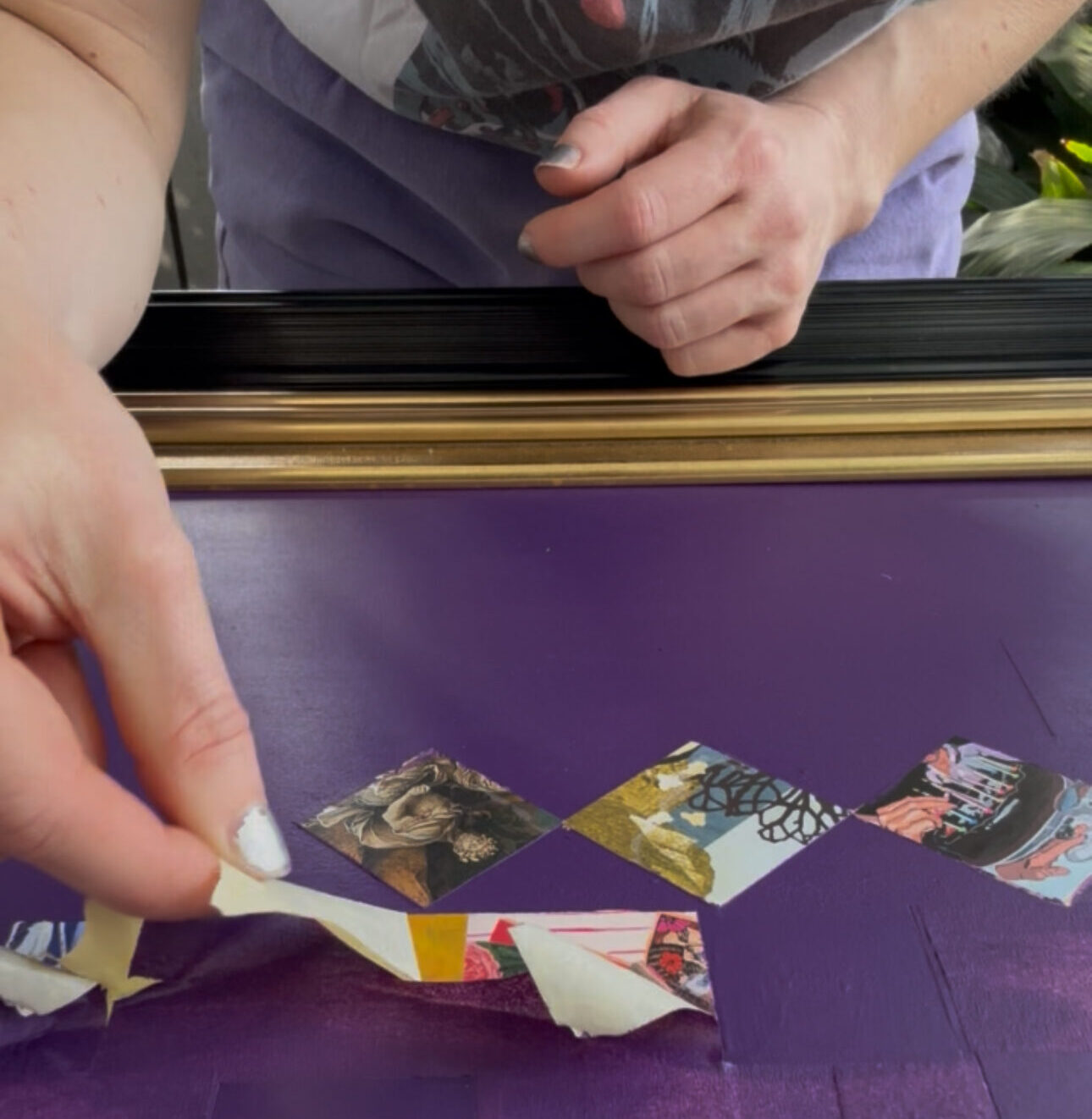 The refurbished “side of the road bargain” frame has been patiently waiting in my studio for years to be turned into art.
